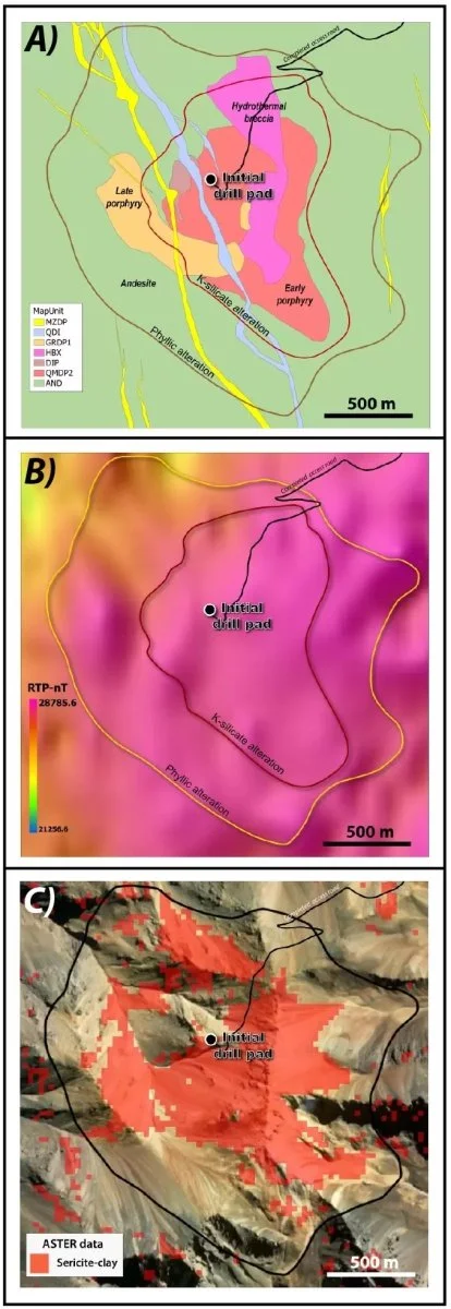 Objetivos estratégicos: El programa se centrará en probar múltiples anomalías geofísicas y geoquímicas de alta prioridad identificadas en campañas previas, las cuales sugieren la presencia de un sistema de pórfido de cobre a gran escala.